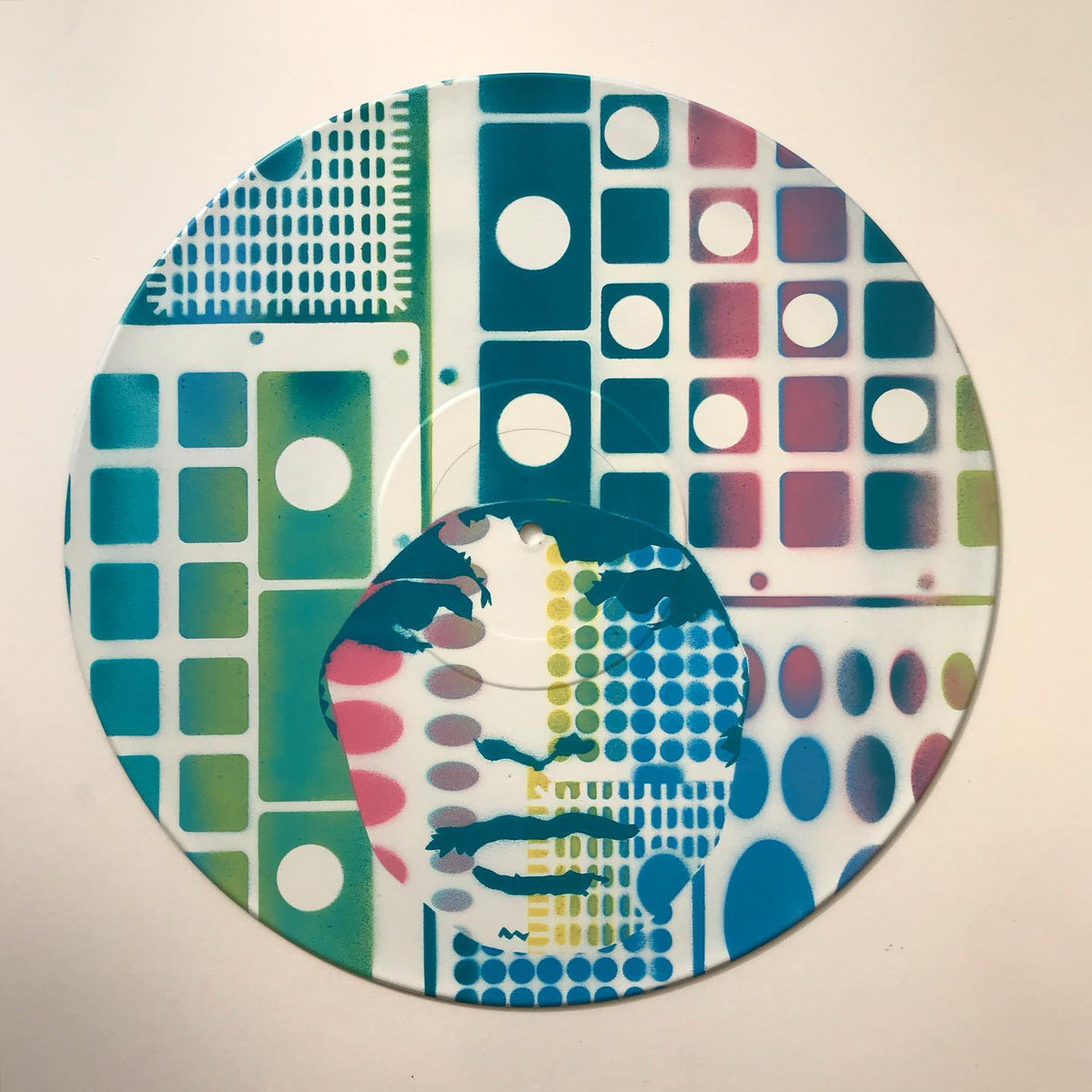 Spary paint & Stencil on 12" Vinyl, by Romanowski